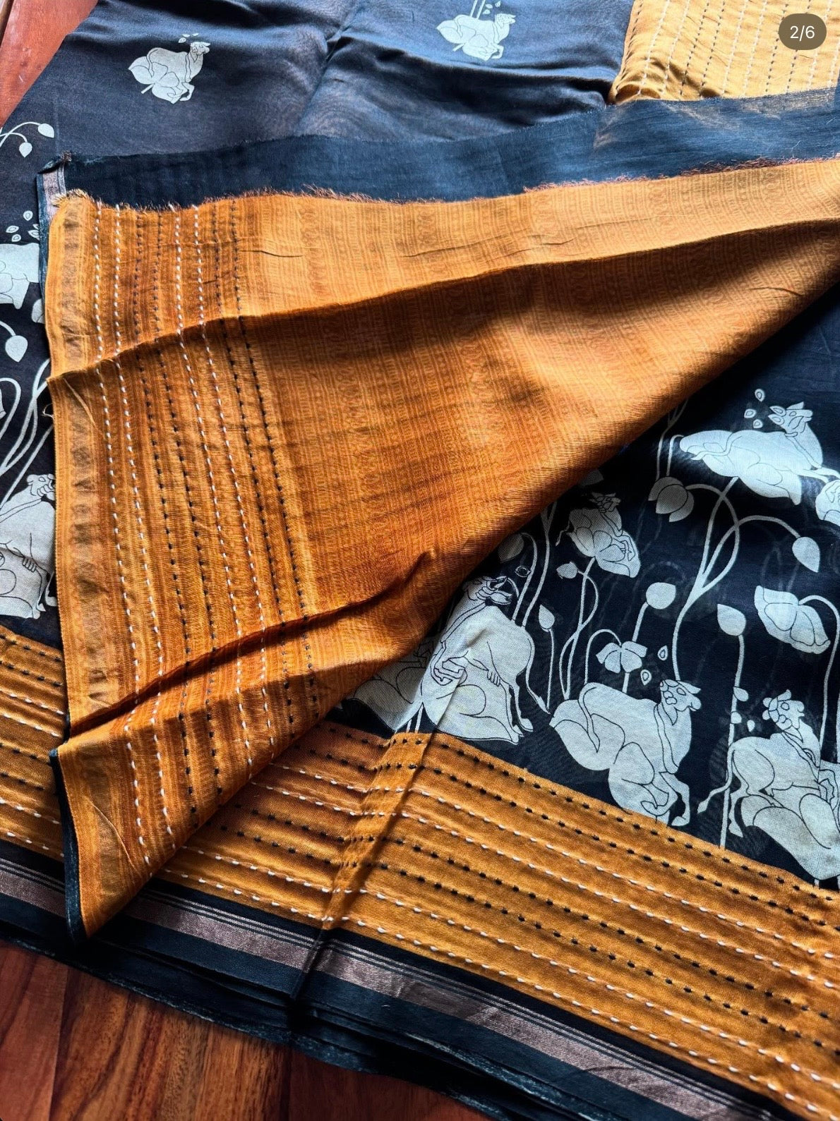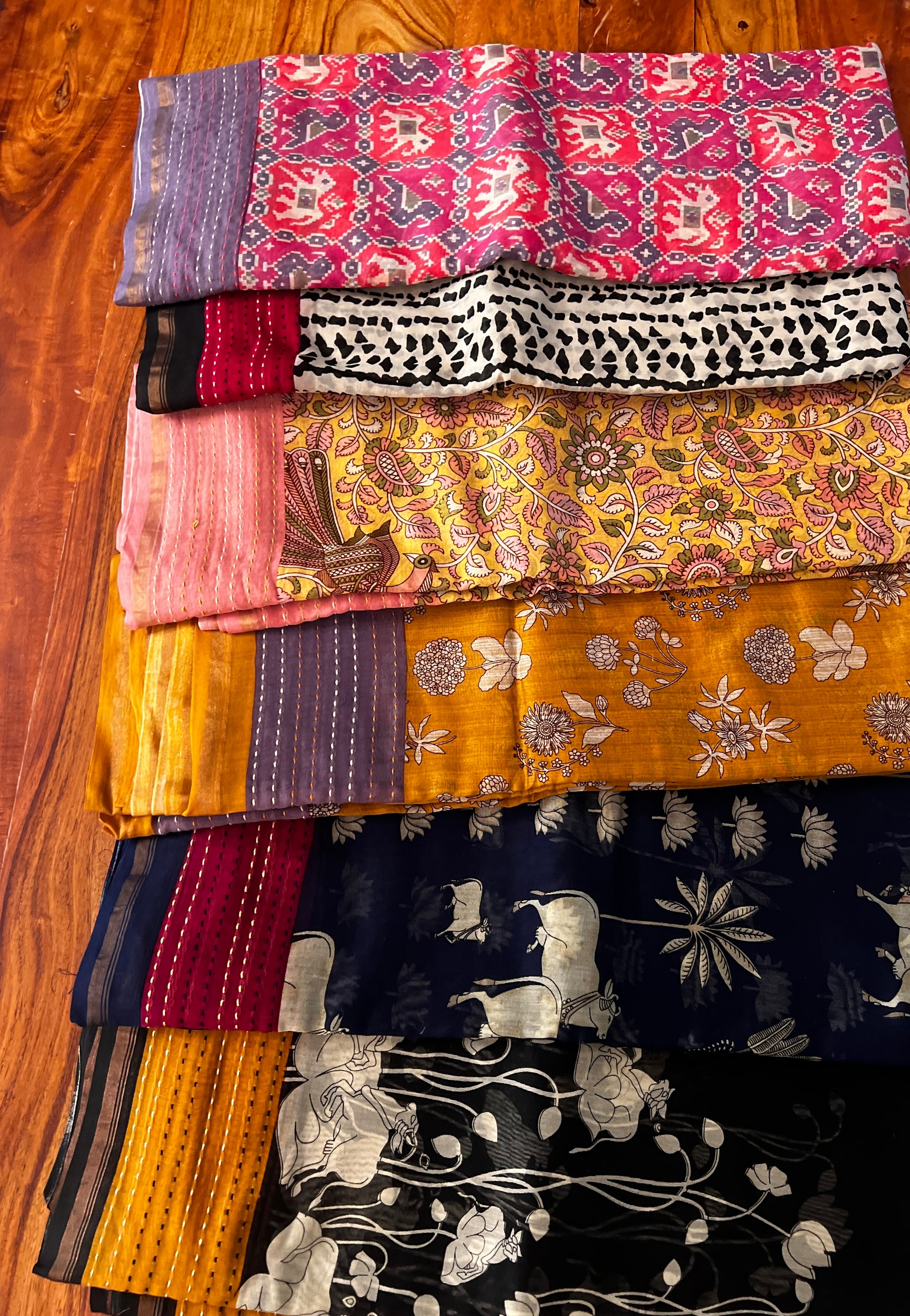 Pure chanderi sarees with Kantha work borders for everyday wear and upcoming Summer .