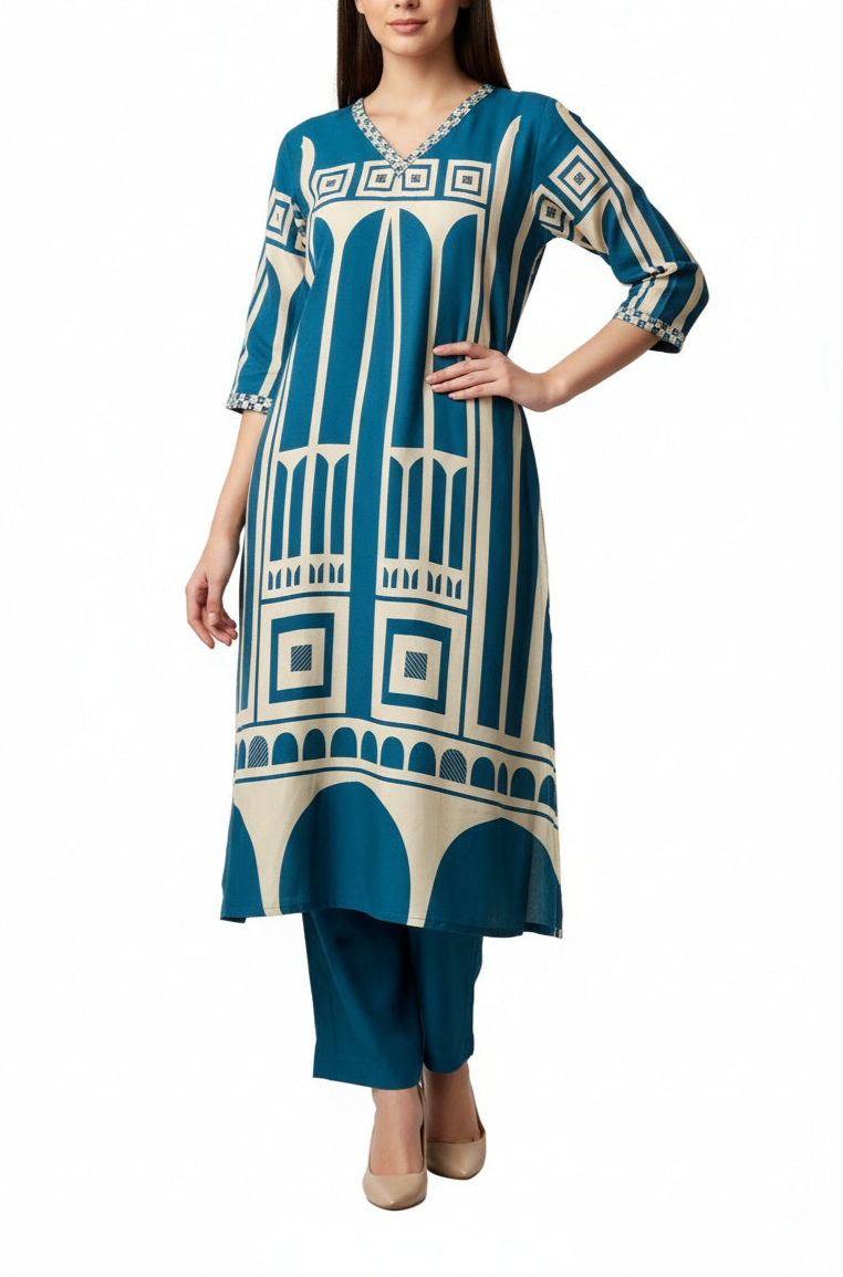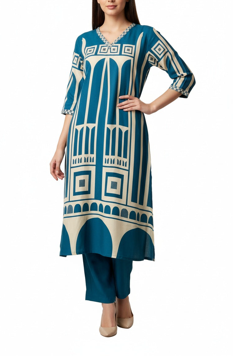 This soft cotton co-ord set features a stunning geometric print in monochrome shades , creating a sleek and modern look that stands out keeping you classy and stylish.